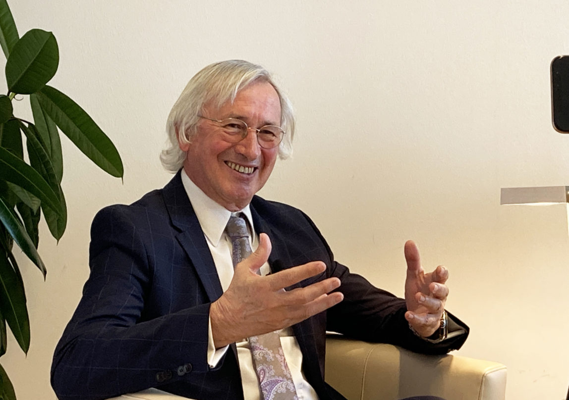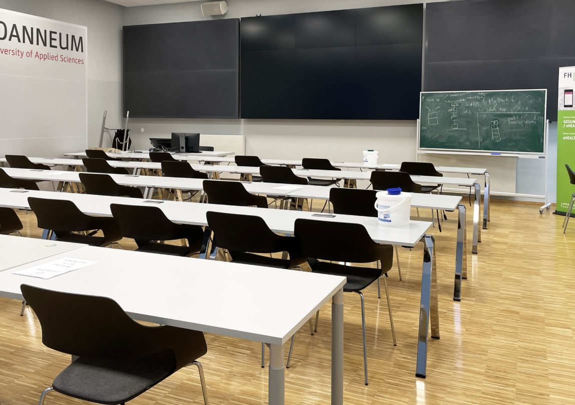 Das hat mir ja schon Spaß gemacht mit 100 Leuten aus der Industrie, aus den Kassen, aus der Ärztekammer und so weiter. Inzwischen habe ich, glaube ich, eine sehr große Begeisterung für das Thema E-Health-Medizin entwickelt. Und was macht man an der Uni als Professor? Man schimpft natürlich über die Verwaltung. Da habe ich mir gedacht, eigentlich blöd. Dann haben mich Freunde darauf aufmerksam gemacht, da gibt es in Graz die FH, die habe ich schon immer beobachtet, ist interessant, vielfältig. „Willst du dich nicht bewerben dort?“ Die suchten damals Rektor und wissenschaftlichen Geschäftsführer und da habe ich mir gedacht, irgendwie sportlich, ich finde das einfach höchst spannend. Nur an der Uni zu bleiben, gehst einmal nach Graz wieder, ich bin ja aus Graz gekommen. Ich bin dann angetreten, dachte, du hast eh keine Chance, da waren so didaktisch höchst entwickelte Persönlichkeiten. Am Ende bin ich doch als Erstgereihter hervorgegangen und aus den vier Jahren sind inzwischen zwölf Jahre geworden. Es ist einfach toll, erstens diesen neuen Typ von Hochschule für angewandte Wissenschaften, dieser intensive Kontakt jetzt wieder zur Industrie, die Vielfalt des Hauses, das ist einfach ganz spannend – von eben wieder Gesundheitsberufe auf der einen Seite aber auch Technik, Informatik also durchaus Design Sachen, die mich auch persönlich begeistern. Ich habe mich eben hier sehr wohl gefühlt und jetzt kann ich nicht mehr über die Hochschulverwaltung schimpfen, jetzt schimpfen heute andere über die Hochschulverwaltung. Aber ich komme, glaube ich, ganz gut aus mit den Leuten, weil sonst wäre ich schon wieder in meine alte Position zurückgegangen. Soweit meine kurze Story.