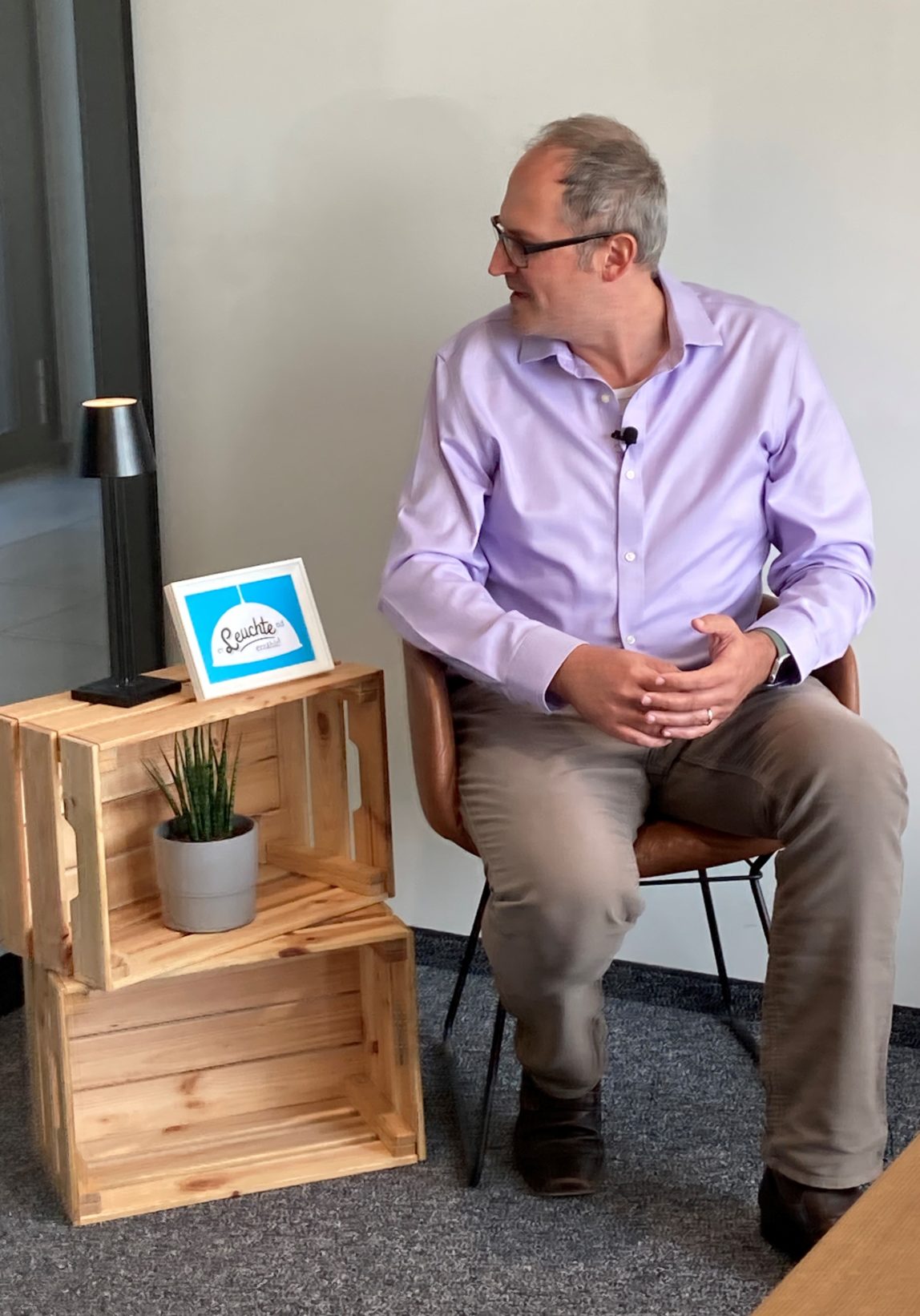 Diese Lampe reflektiert ein bisschen vielleicht meinen Zugang zum Geschäftsleben. Sehr direkt, sie ist unkompliziert, ohne Schnörkel, ist aber gleichzeitig klar und fokussiert auf das Wesentliche und damit doch auch sehr ansprechend.