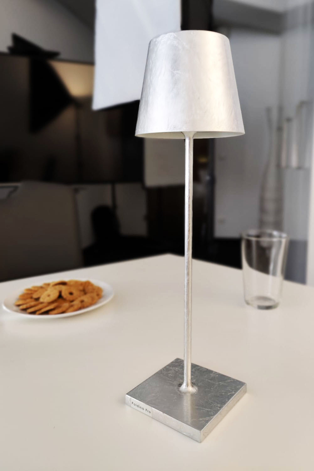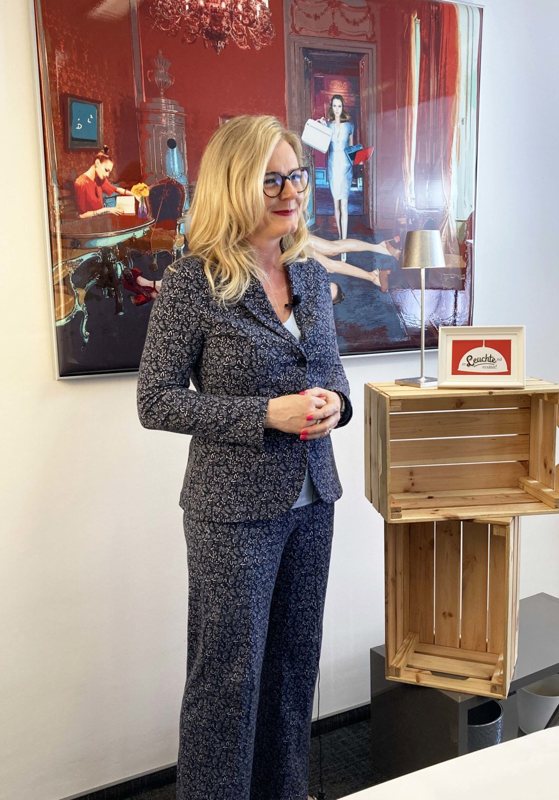 Diese Lampe ist meine Lampe und diese Lampe kann vielleicht ein bisschen erzählen, wie mein Leben funktioniert. Sie ist aufgeladen, sie hat kein fixes Kabel, sie steht eigentlich auf meinem Nachtkästchen und wenn ich Freude daran habe, steht sie auch mal am Esstisch oder am Balkon, damit sie mir ein bisschen Licht gibt. Sie steht heute in meinem Büro, das heißt mein Leben ist so aufgebaut, dass man manchmal nicht erkennen kann, was beruflich und privat ist und so fühle ich auch meine Arbeit.