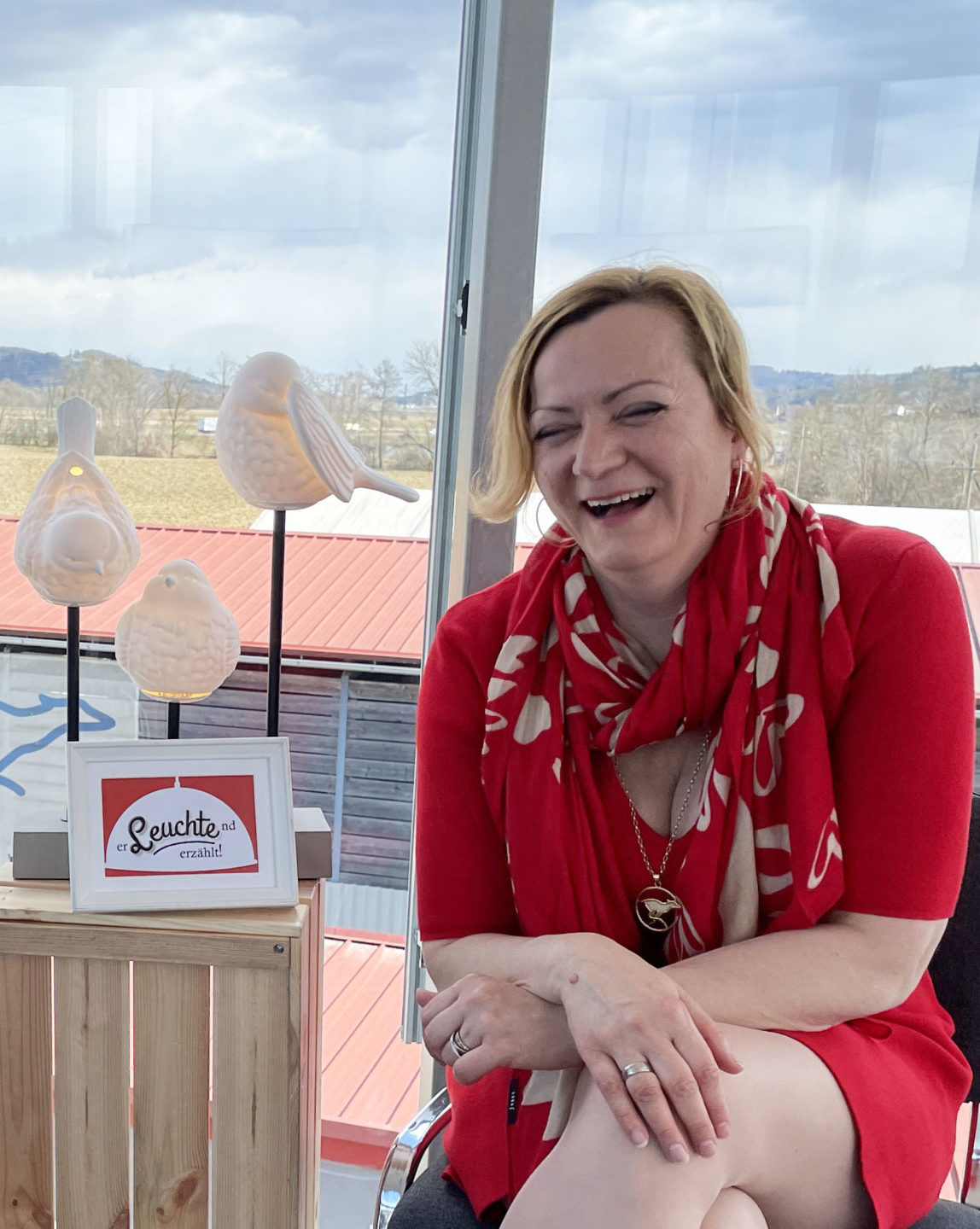 Für diese Lampe habe ich mich entschieden, weil es meine Person sehr gut widerspiegelt. Der Vogel als Symbol für Freiheit und Unabhängigkeit – das sind meine zwei wichtigsten Werte. Dann die Kombination aus Beton am Sockel, der das Ganze sehr stabil hält, der sehr hart ist und oben ist das Material Porzellan. Porzellan ist irrsinnig widerstandsfähig, kommt teilweise vom Ton. Ton ist sehr formbar, kann man sehr künstlerisch, sehr kreativ behandeln und Porzellan ist trotz allem sehr resilient in seiner Materialbeschaffenheit. Und ich glaube das spiegelt auch mich wider.