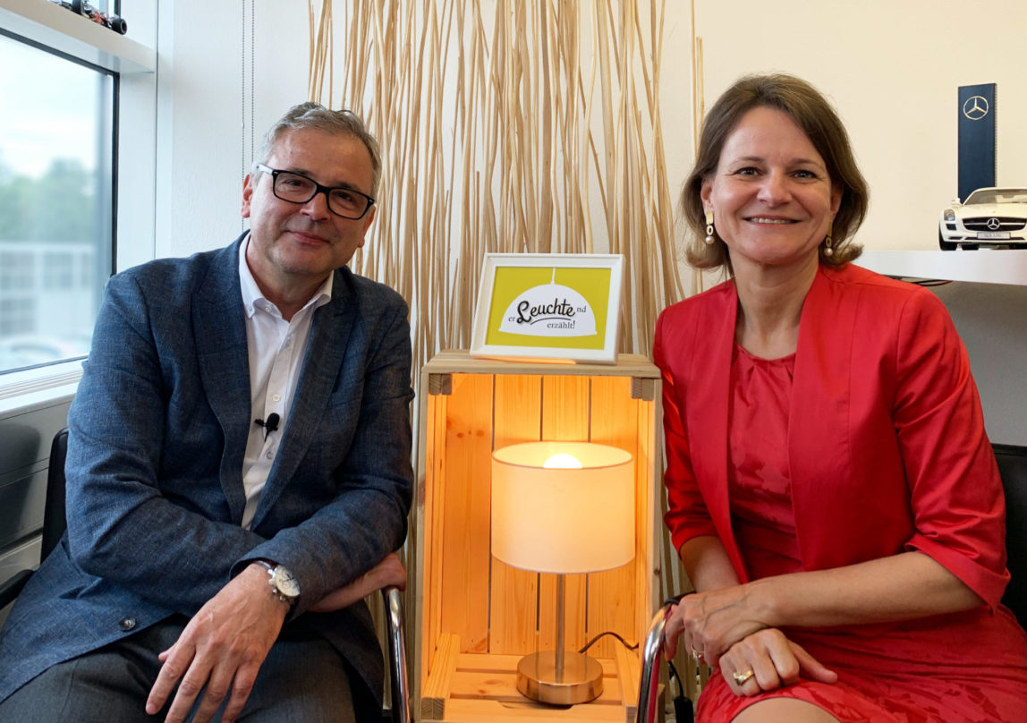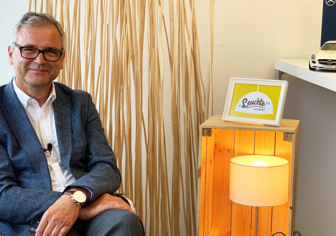 Es ist für mich die klassische Lampe. Sie erinnert mich an das “eingezwängt” sein, sozusagen an den Hamster im Rad. Denn auch wir rennen von Monat zu Monat und schauen, dass wir Ziele und Ergebnisse hier im Autohaus schaffen und erbringen. Das hat mich inspiriert, deswegen habe ich mich für diese Lampe entschieden.